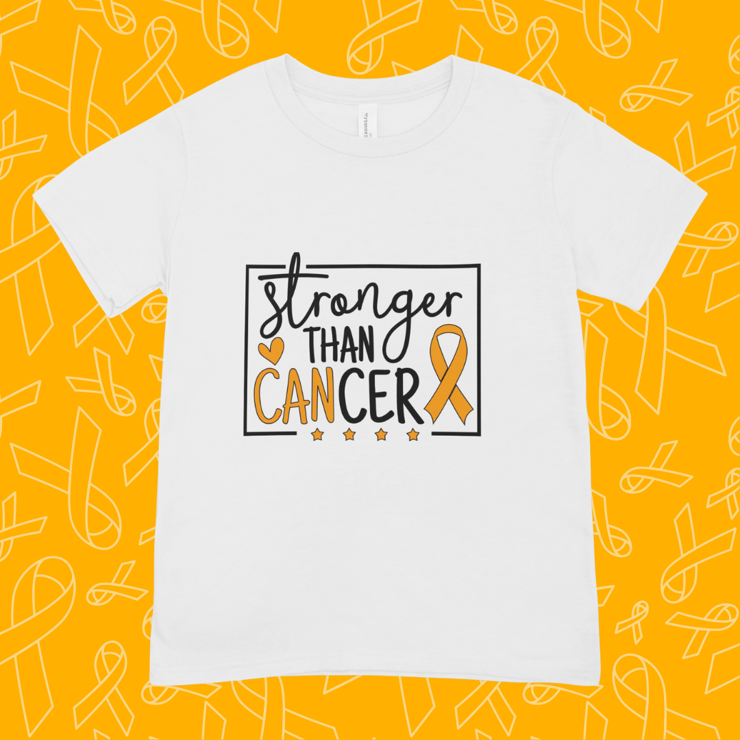 A text-based design with the words "Stronger Than Cancer". The design is surrounded by a square box outline. There are also 5 small stars, a heart, and a cancer ribbon within the outline.